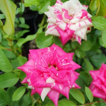 Яркие контрастные цветы бордюрной розы Старс энд Страйпс словно фантазия художника.. На длинных побегах распускается 8-10 бутонов диаметром 3-5 см нежно белого оттенка с ярко-малиновыми густыми разводами по волнистым лепесткам. Аромат нежный, слегка уловимый, но словно по тоненькой ниточке манит к себе. Продолжительность цветения куста непрерывная, цветок розы Стар энд Страйпс сохраняет свою свежесть на протяжении 7-10 дней. Высота куста розы Стар энд Страйпс достигает 50-60 см, с маленькими темно-зелеными листьями, придающими кусту пышность и шарм. В срезке сорт Стар энд Страйпс очень устойчив, а в букете смотрится просто великолепно. Рекомендуется высаживать розу на солнечных открытых местах. Сорт Стар энд Страйпс устойчив к болезням и имеет высокую степень зимостойкости,